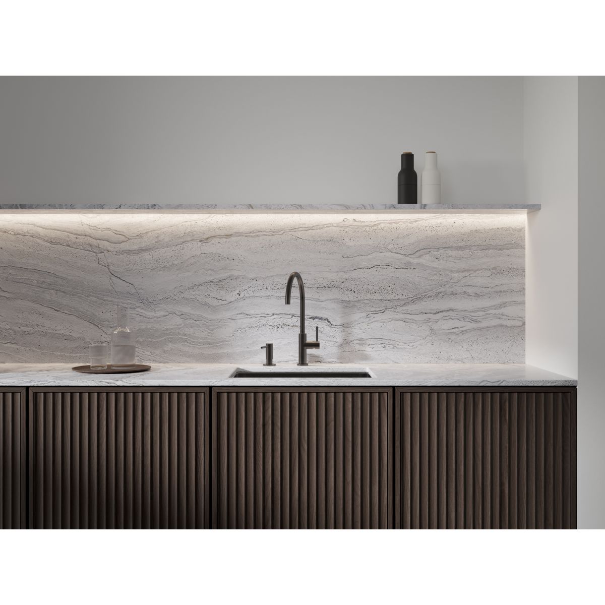Graphit ist eine faszinierende Oberfläche in einem metallischen Grauton mit einer satinierten, gebürsteten Oberfläche.