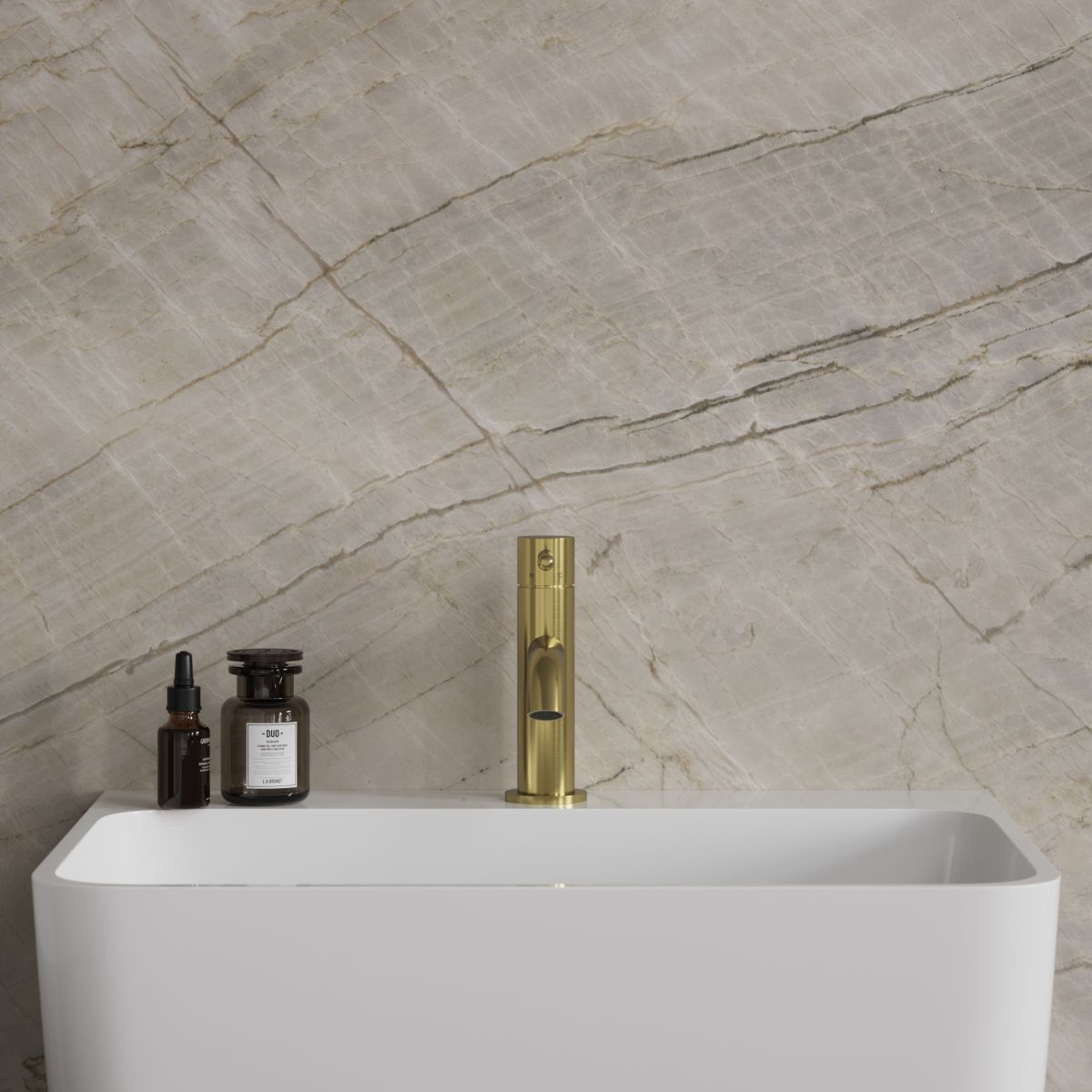 Das gebürstete Messing ist eine edle Oberfläche in einem kühlen Goldton mit einer satinierten, gebürsteten Oberfläche. Die Beschichtung wurde mit fortschrittlicher PVD-Technologie hergestellt.