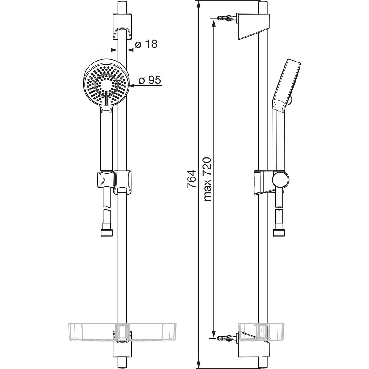 Inbegriffen: Duschkopf, Duschschlauch, Duschstange, Seifenspender