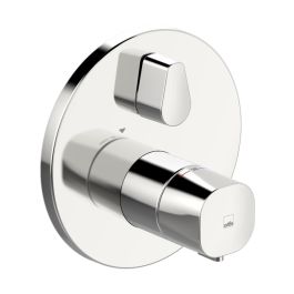 - enthält eine Funktionseinheit und ein rundes Aufputzelement für eine thermostatische Wannen- und Brausebatterie