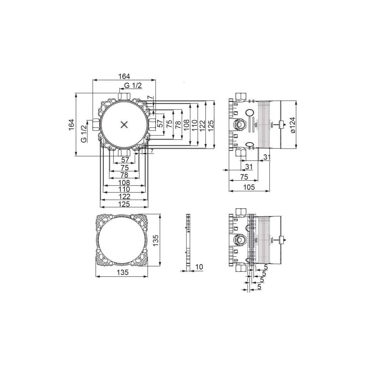 - Körper der Badewannen- und Duscharmatur, G1/2