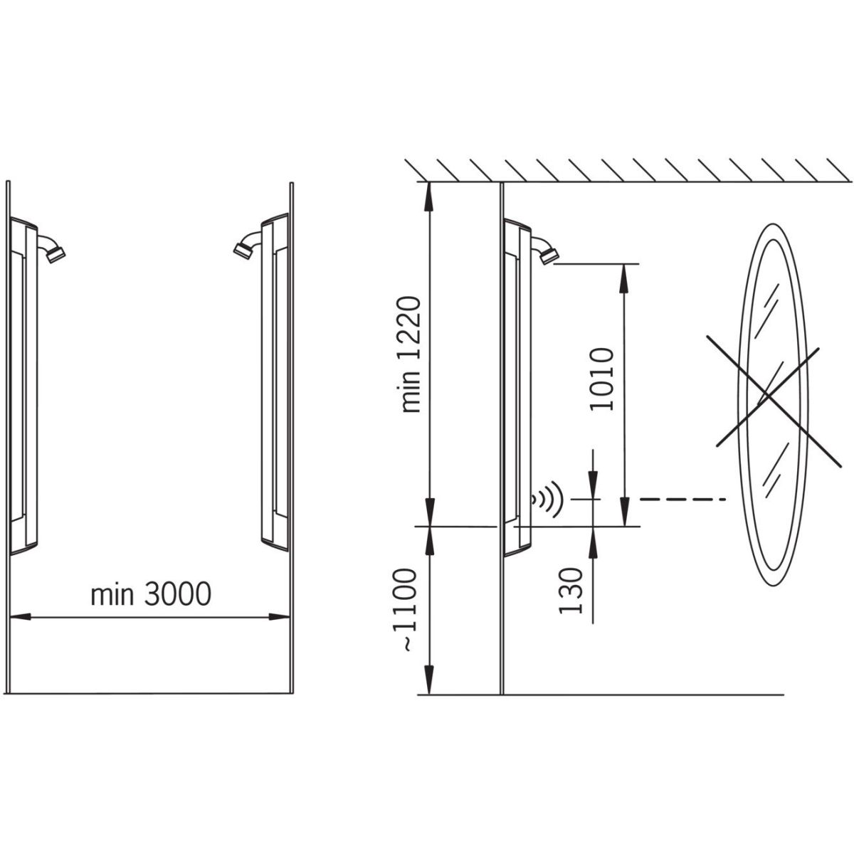 - Das Erscheinen der Hand im Bereich des Sensors löst die Dusche aus