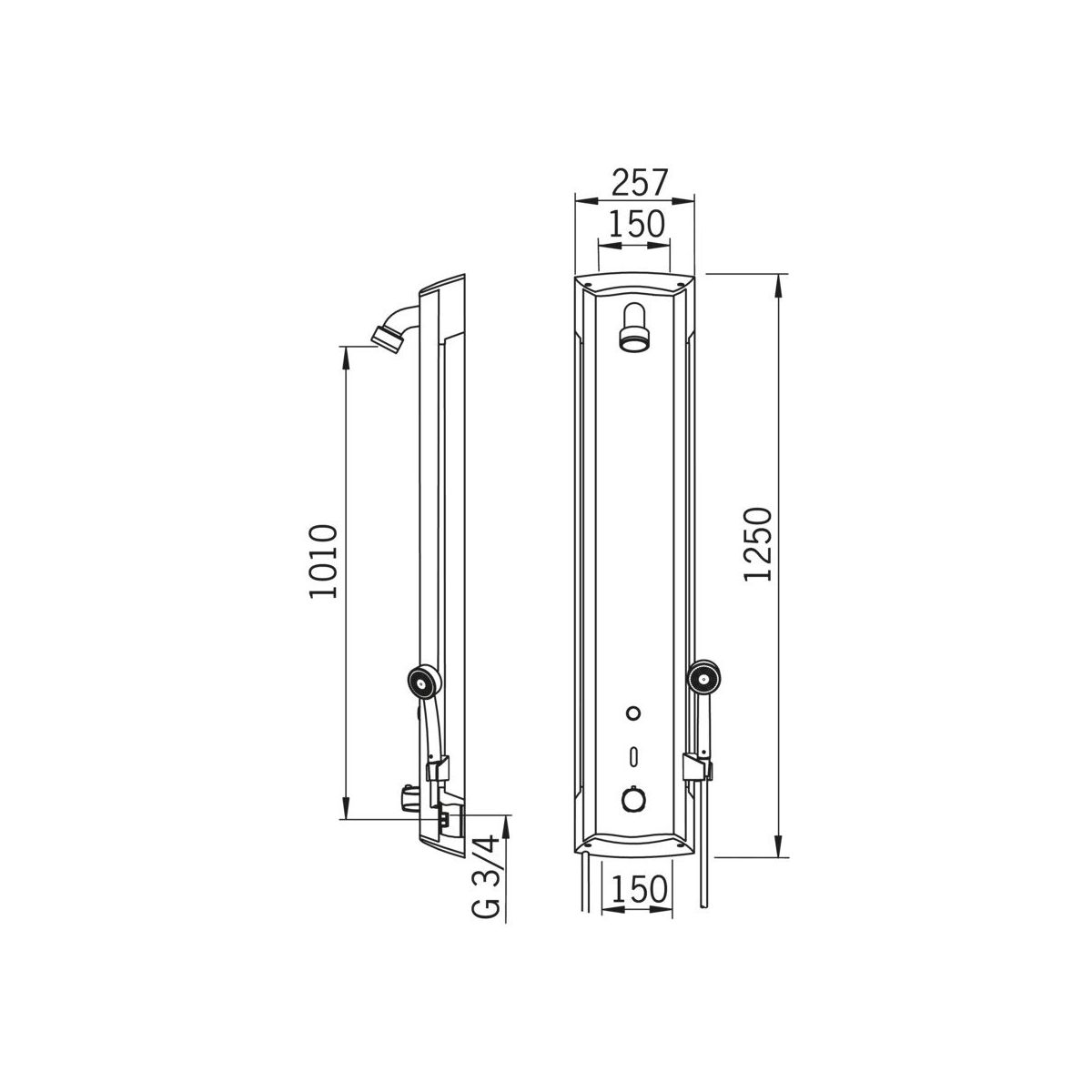 - Ausgestattet mit zwei Duschköpfen: einem oberen, der integraler Bestandteil des Panels ist, und einem unteren, der sich in der abnehmbaren Handbrause befindet