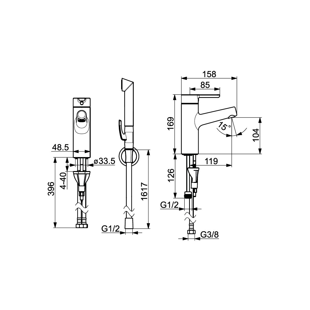 - Waschbeckenarmatur mit Bidetta-Brausegriff