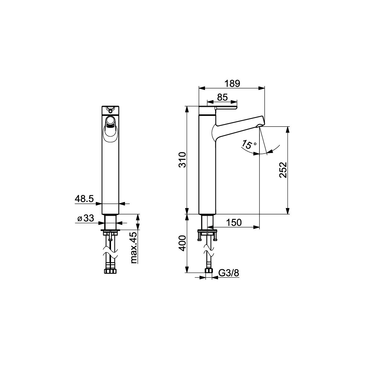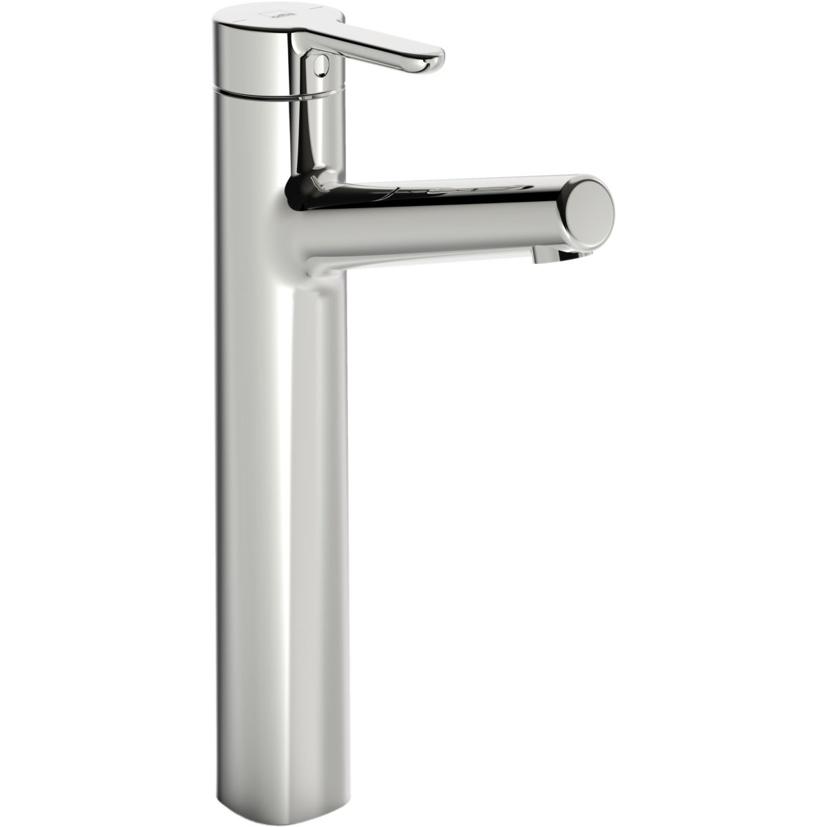 - hohe Waschtischarmatur mit feststehendem Auslauf und Strahlregler