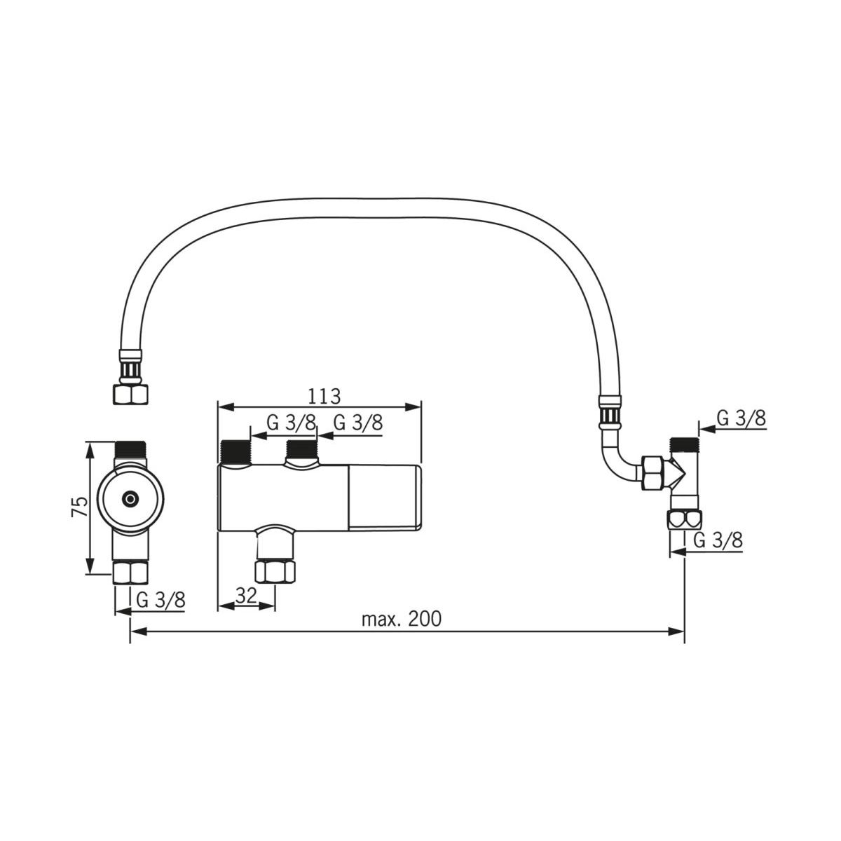 - flexibler Schlauch 30 cm mit zwei 3/8"-Muttern auf beiden Seiten