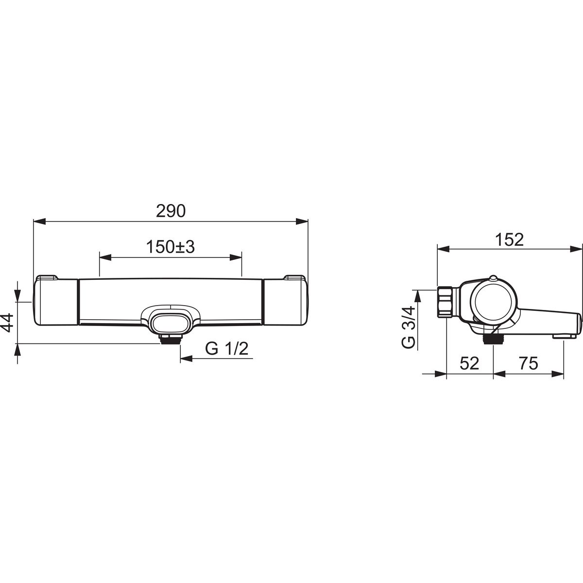 Oras Nova Badewannen- und Duscharmatur Wandmontage mit Thermostat schwarz 7462G-33