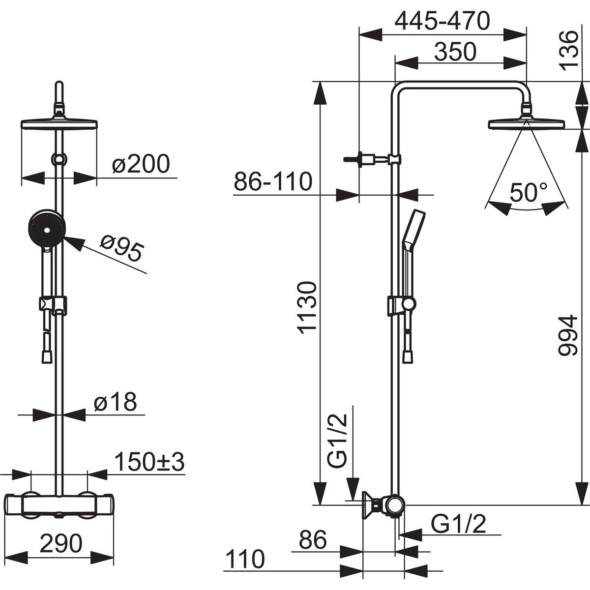 Inbegriffen: Batterie mit Schalter, Duschkopf, Duschkopf, Duschschlauch, Duschstange