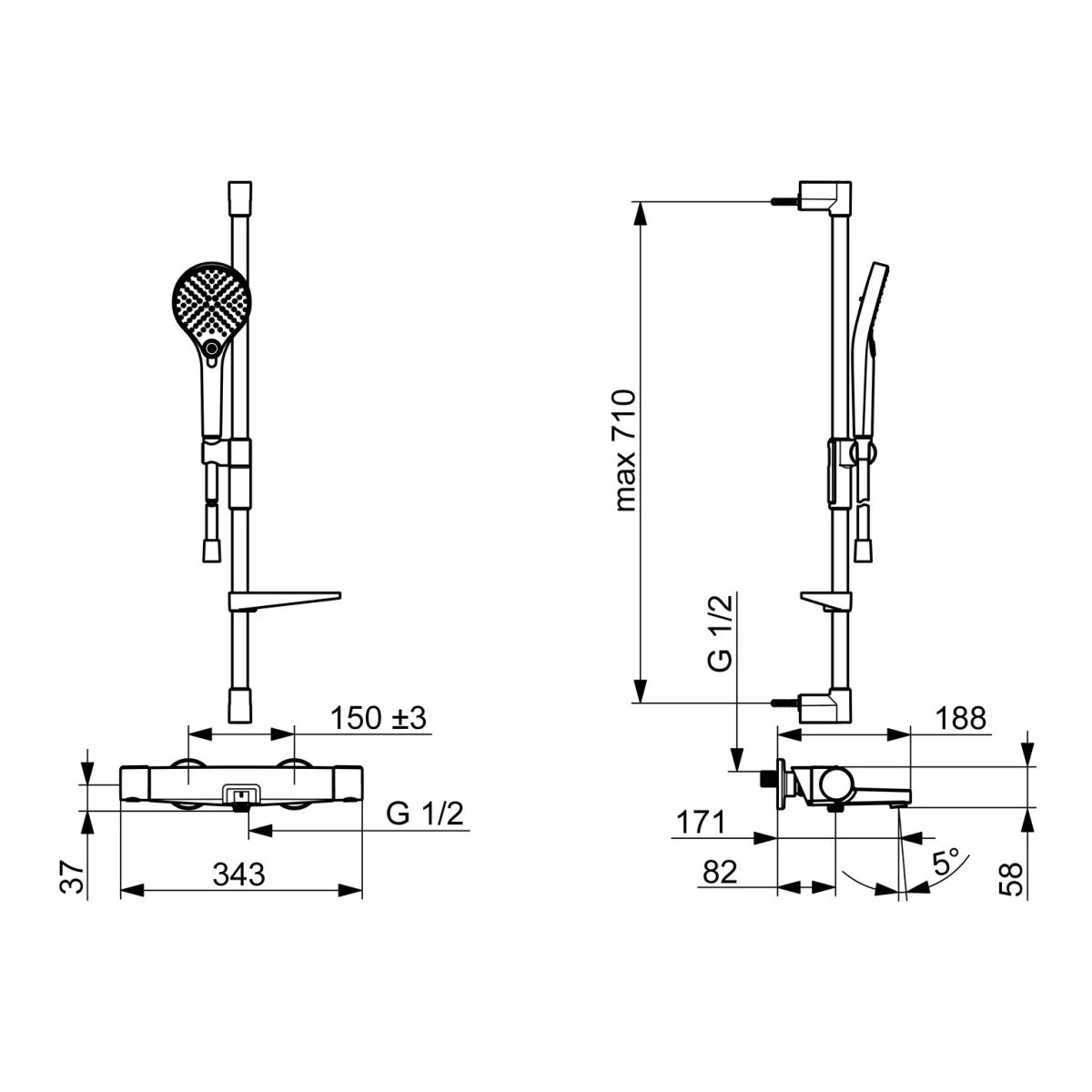 - Mit Duschset: Duschkopf, 175 cm langer Duschschlauch, Duschstange, Seifenschale