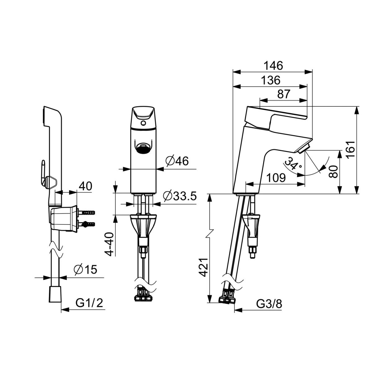 - Mechanische Teile: Keramikkopf ø 30 mm zur Einstellung von Durchfluss und Temperatur