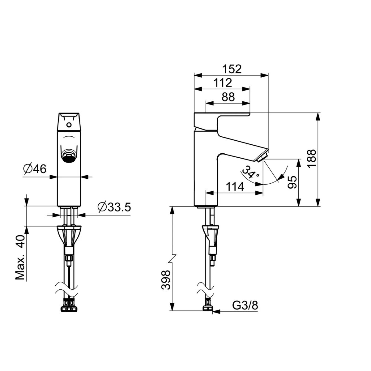 - Hebel / Griffart: Einzelhebel/Griff, Symbole für warm/kalt