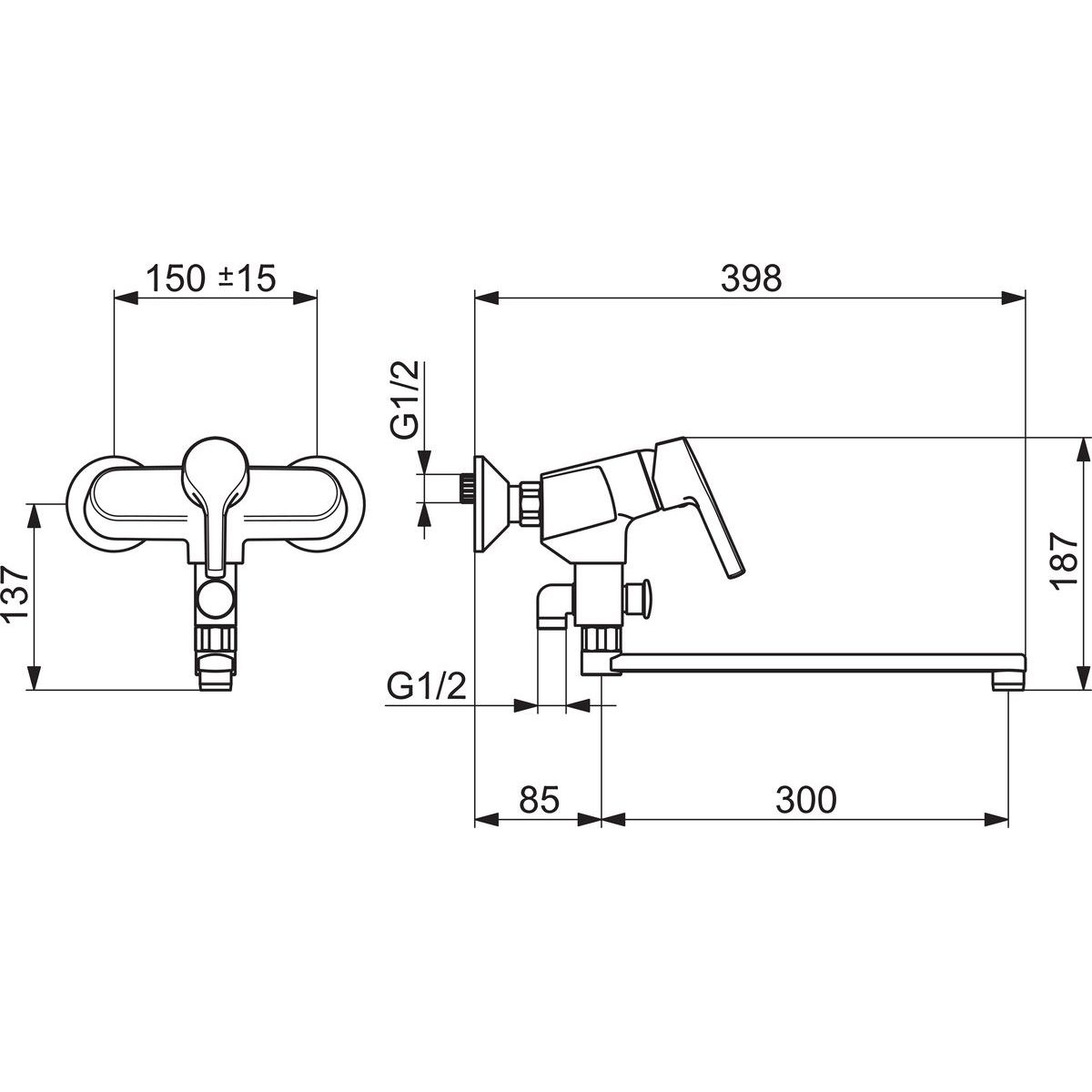 - Wasserdurchfluss bei 300 kPa: 0,3/0,3 l/s