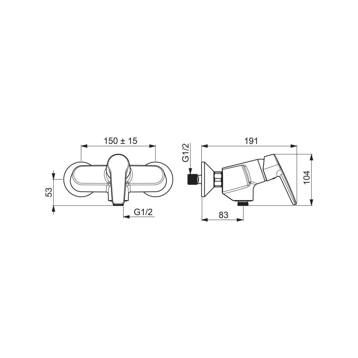 - Duschschlauchanschluss G 1/2