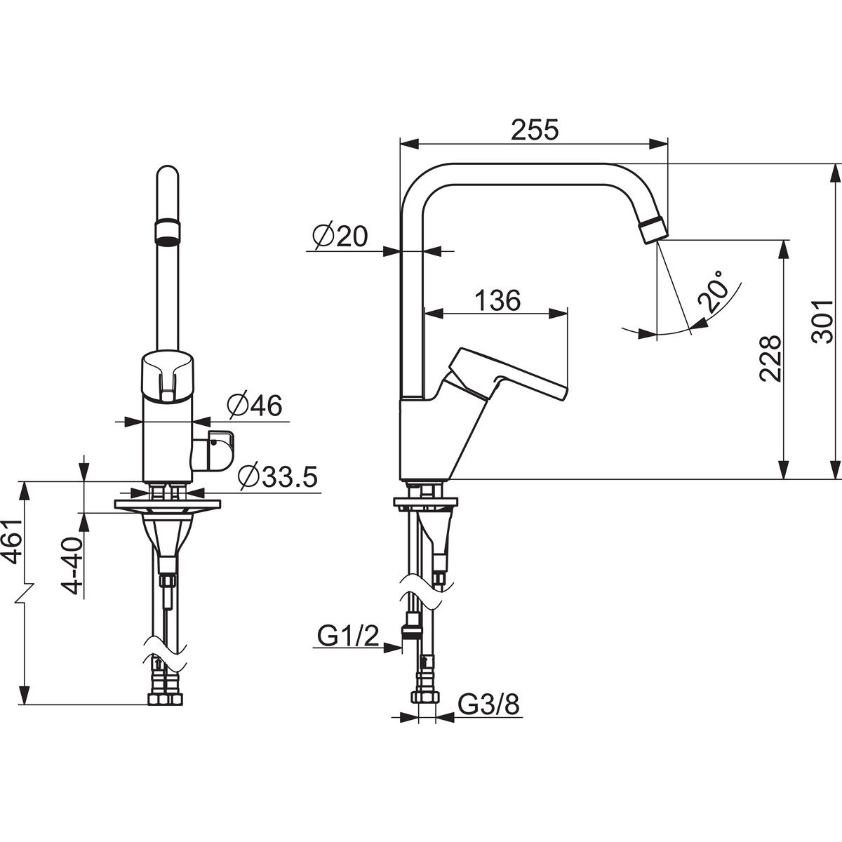 - Ausziehbarer Auslauf: nein