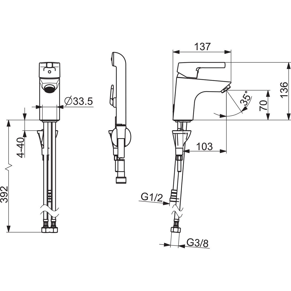 - Durchflussmenge bei 300 kPa (mit Durchflussregler): 0,1 l/s