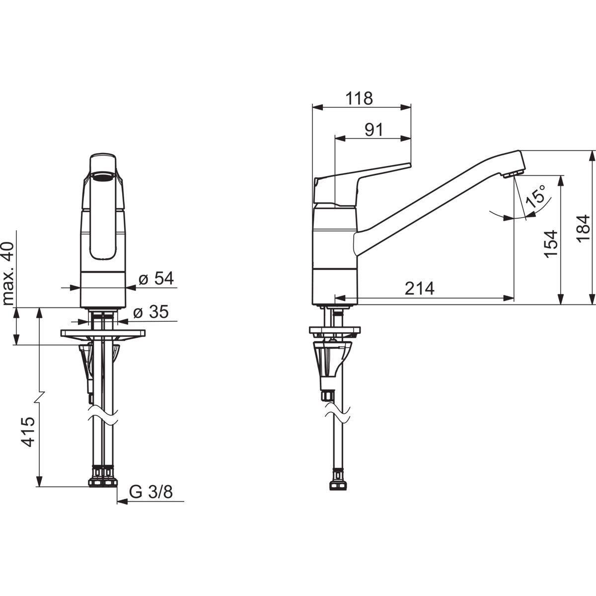 - Der Hebel ist mit einem Eco-Knopf ausgestattet, der den Wasserfluss vorab begrenzt