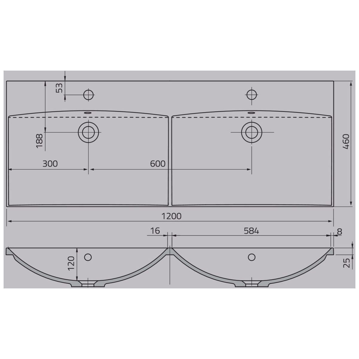 Oristo Amelia Waschbecken 120.2x46 cm rechteckig Möbel-Doppelt weiß UME-AM-120-92-D