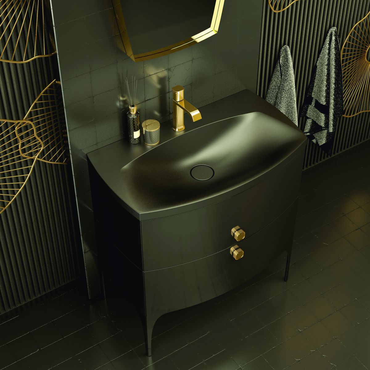 Oristo Louis Kabinett 81.6x47.7x55.4 cm Unterschrank hängend schwarz OR50-SD2S-82-7