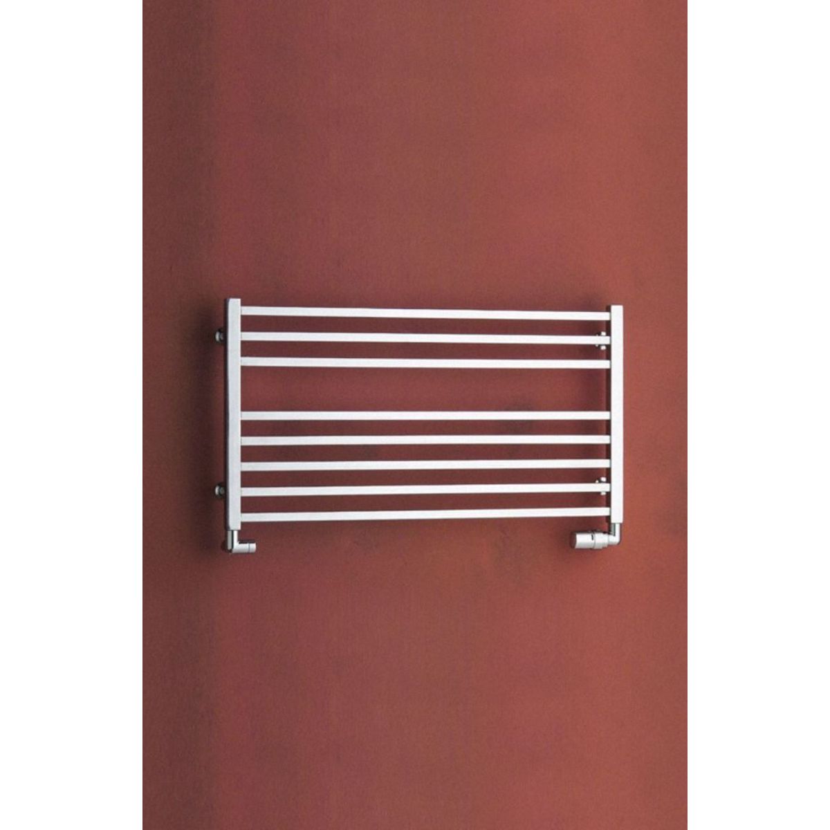 Anschlussmöglichkeiten: unten an beiden Kollektoren, auf einer Seite an einem Kollektor. Das Foto zeigt eine Beispielkonfiguration des Heizkörpers in einer anderen Farbe und Größe.