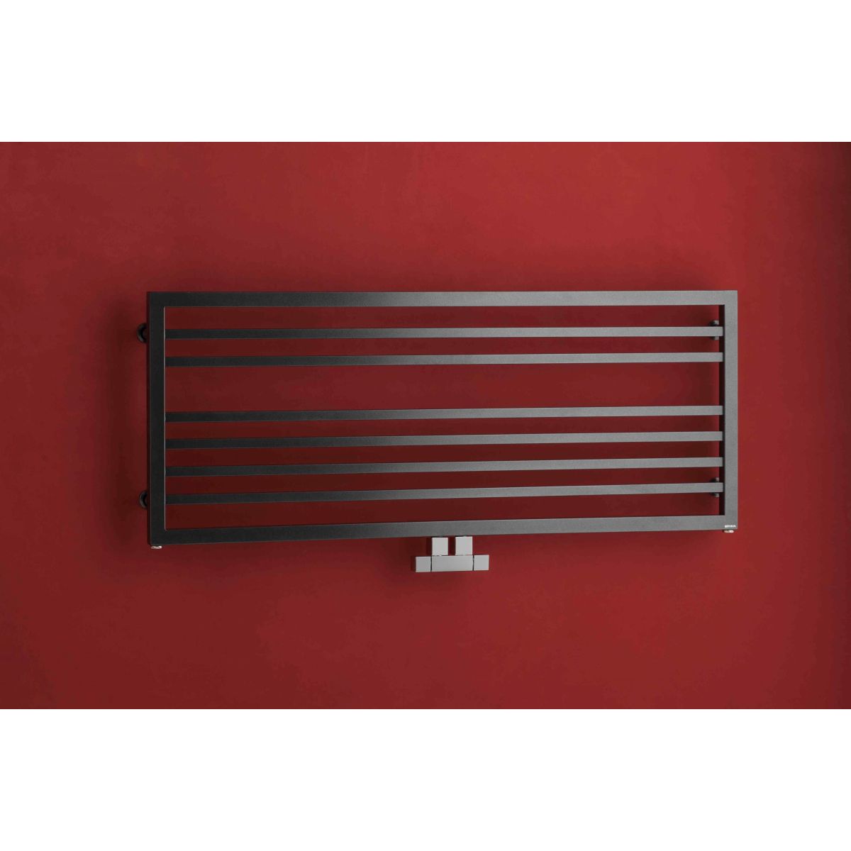 Anschlussoptionen: unten an beiden Kollektoren, auf einer Seite an einem Kollektor oder zentral. Das Foto zeigt eine Beispielkonfiguration des Heizkörpers in einer anderen Farbe und Größe.