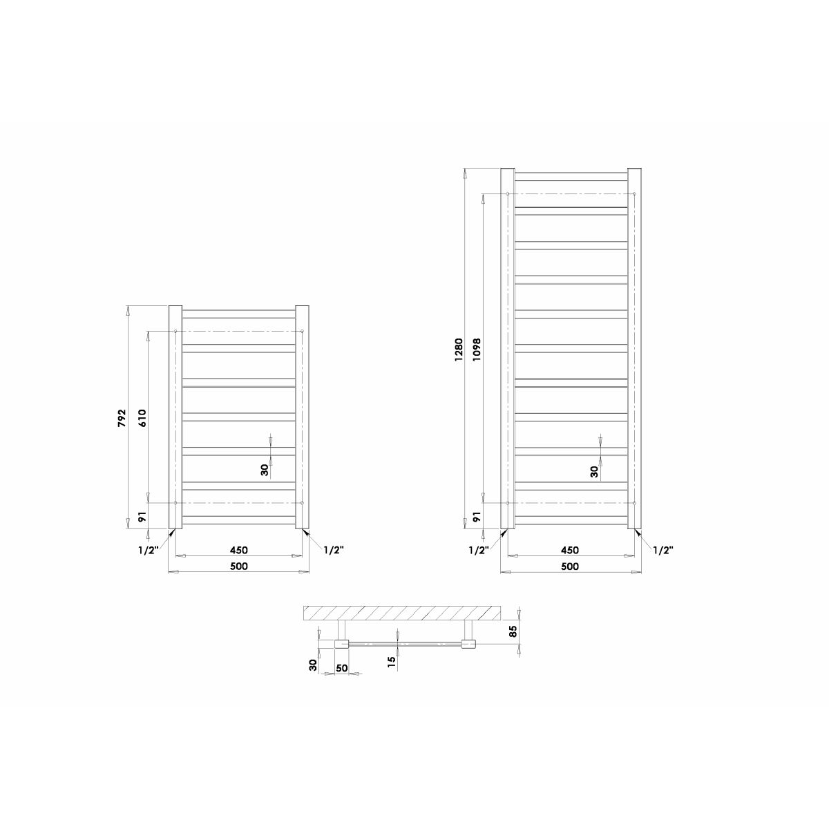 P.M.H. Galeon Badezimmerheizkörper dekorativ 128x50 cm G3SS