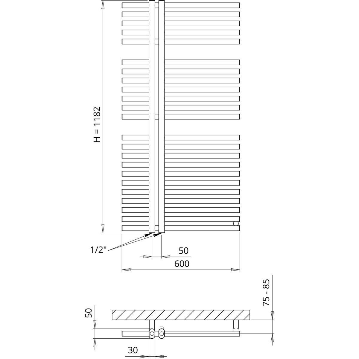 - Durchmesser der vertikalen Kollektoren: 30x50 mm