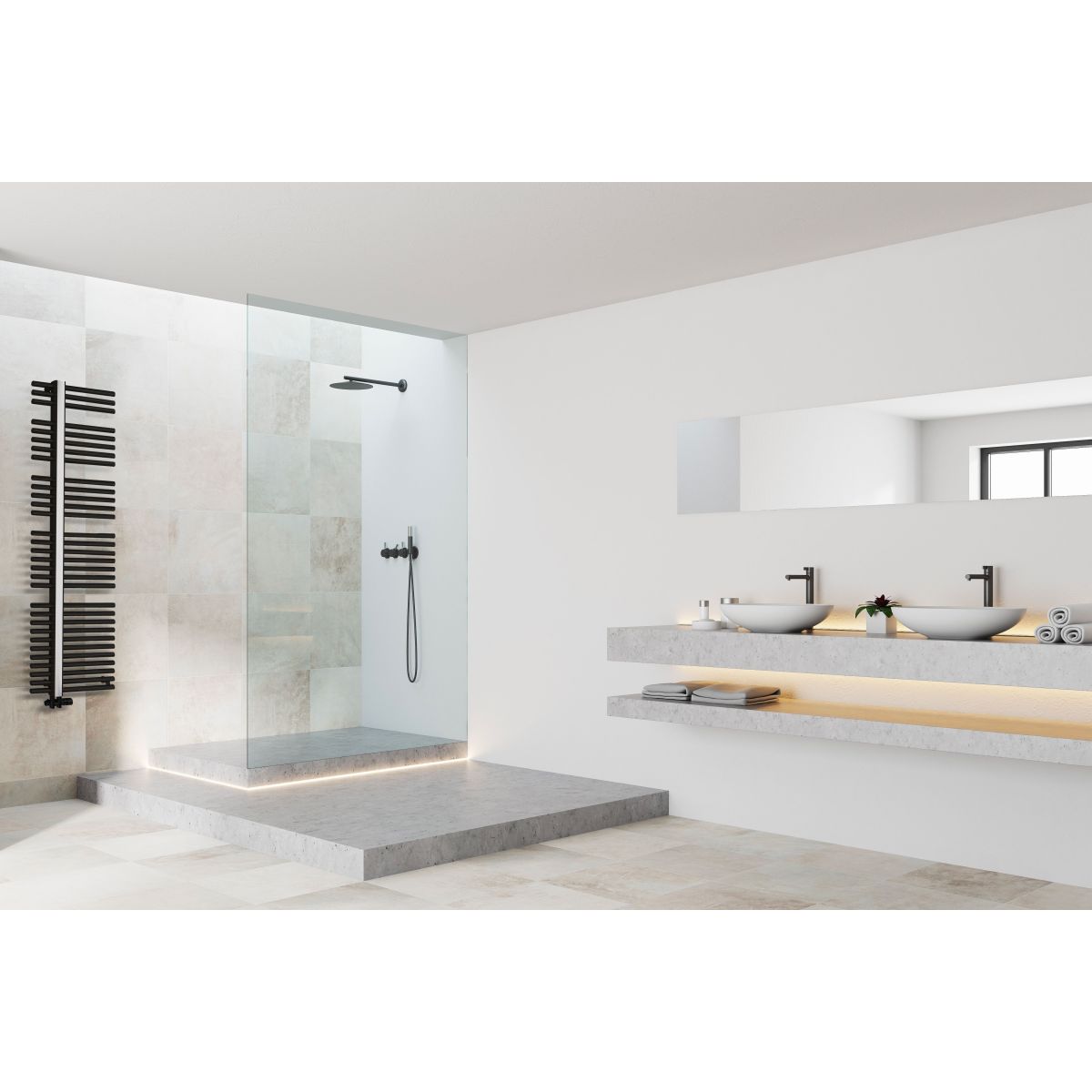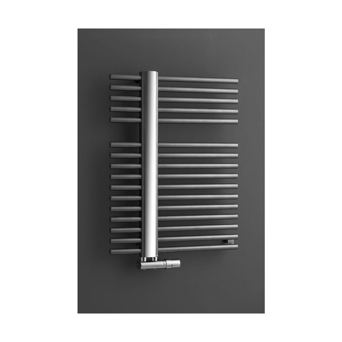KRONOS ist ein Heizkörper mit einem ausdrucksstarken, industriellen Charakter, der durch seine minimalistische, aber kraftvolle Form Aufmerksamkeit erregt. Sein Charakter wird durch zwei vertikale Profile und davon abgehende horizontale Rohre geprägt. Der Heizkörper ist mit einer dekorativen, glänzenden Leiste ausgestattet, die jederzeit entfernt werden kann, um das Aussehen des Heizkörpers zu verändern.