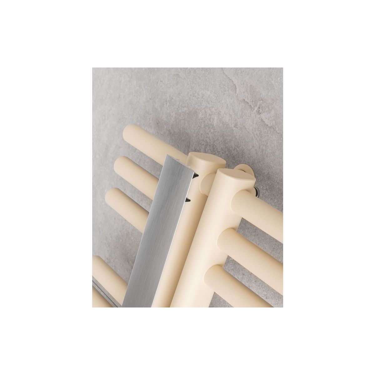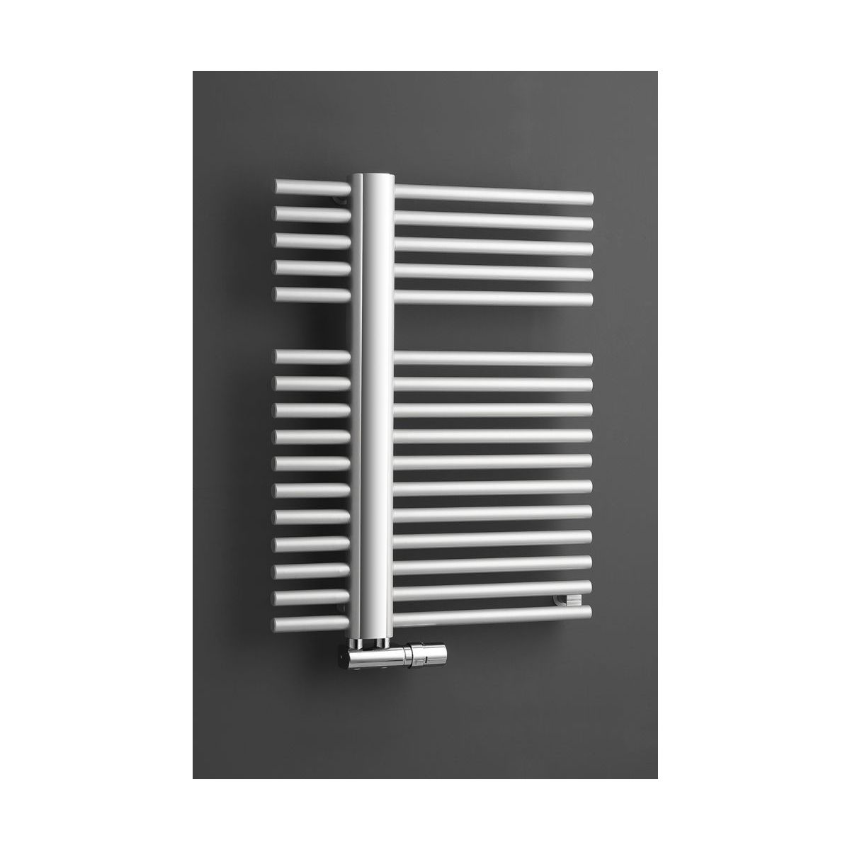 KRONOS ist ein Heizkörper mit einem ausdrucksstarken, industriellen Charakter, der durch seine minimalistische, aber kraftvolle Form Aufmerksamkeit erregt. Sein Charakter wird durch zwei vertikale Profile und davon abgehende horizontale Rohre geprägt. Der Heizkörper ist mit einer dekorativen, glänzenden Leiste ausgestattet, die jederzeit entfernt werden kann, um das Aussehen des Heizkörpers zu verändern.