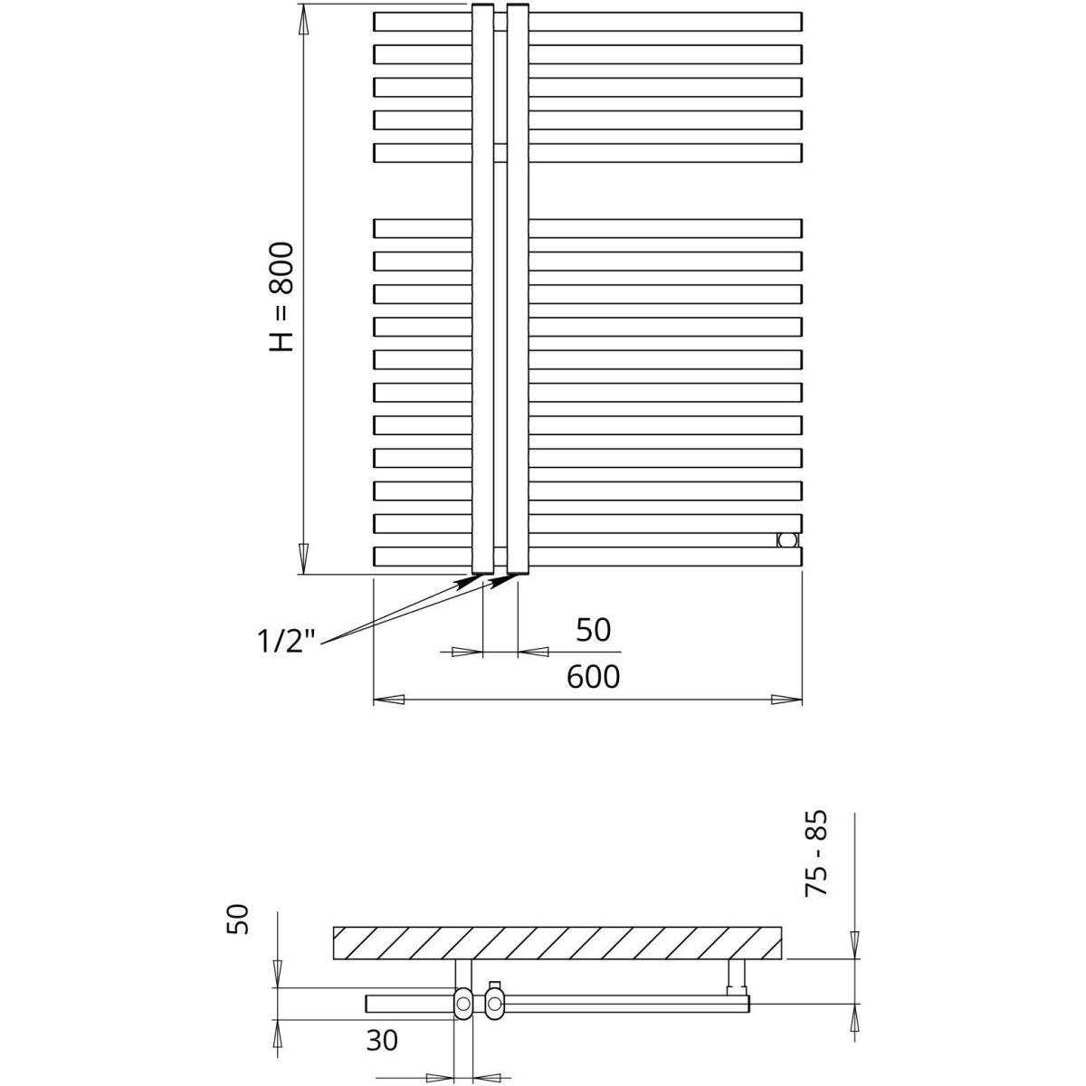 - Durchmesser der vertikalen Kollektoren: 30x50 mm