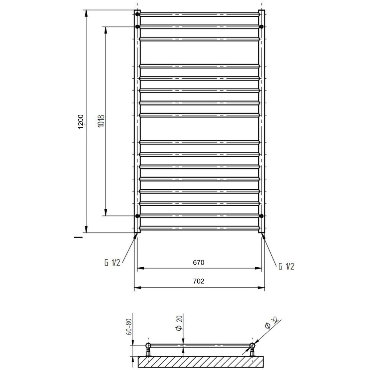 - Durchmesser der vertikalen Kollektoren: ø 32 mm