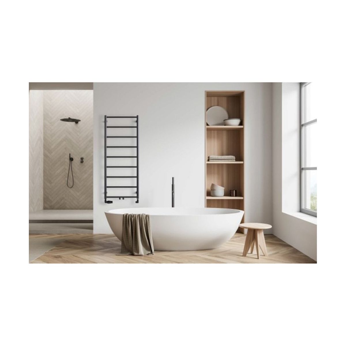 Der Badheizkörper Naas ist die perfekte Wahl für alle, die Einfachheit, Komfort und modernes Design schätzen. Seine geometrische Konstruktion, die auf horizontalen Rohren basiert, die in gleichmäßigen, aber großen Abständen angeordnet sind, verleiht ihm Leichtigkeit und erhöht gleichzeitig den Komfort.