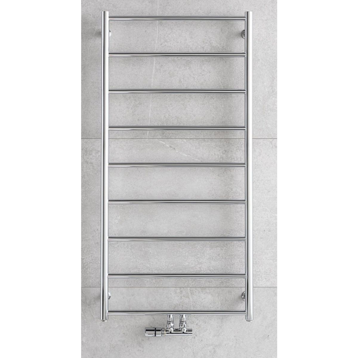 Der Badheizkörper Naas ist die perfekte Wahl für alle, die Einfachheit, Komfort und modernes Design schätzen. Seine geometrische Konstruktion, die auf horizontalen Rohren basiert, die in gleichmäßigen, aber großen Abständen angeordnet sind, verleiht ihm Leichtigkeit und erhöht gleichzeitig den Bedienkomfort.