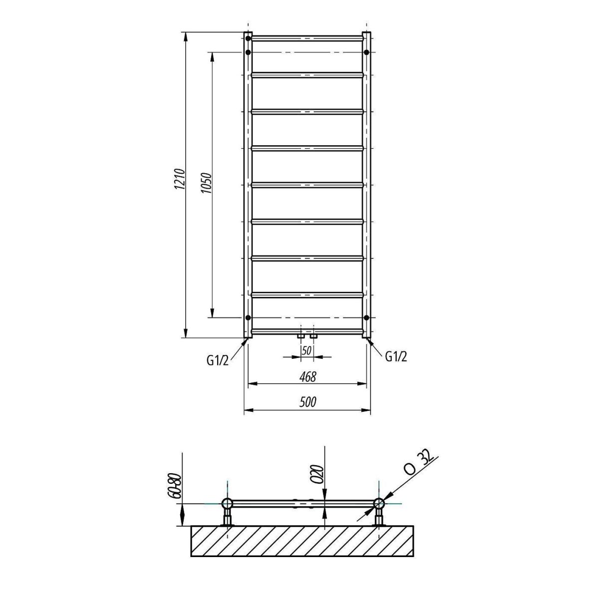 - Durchmesser der vertikalen Kollektoren: ø 32 mm