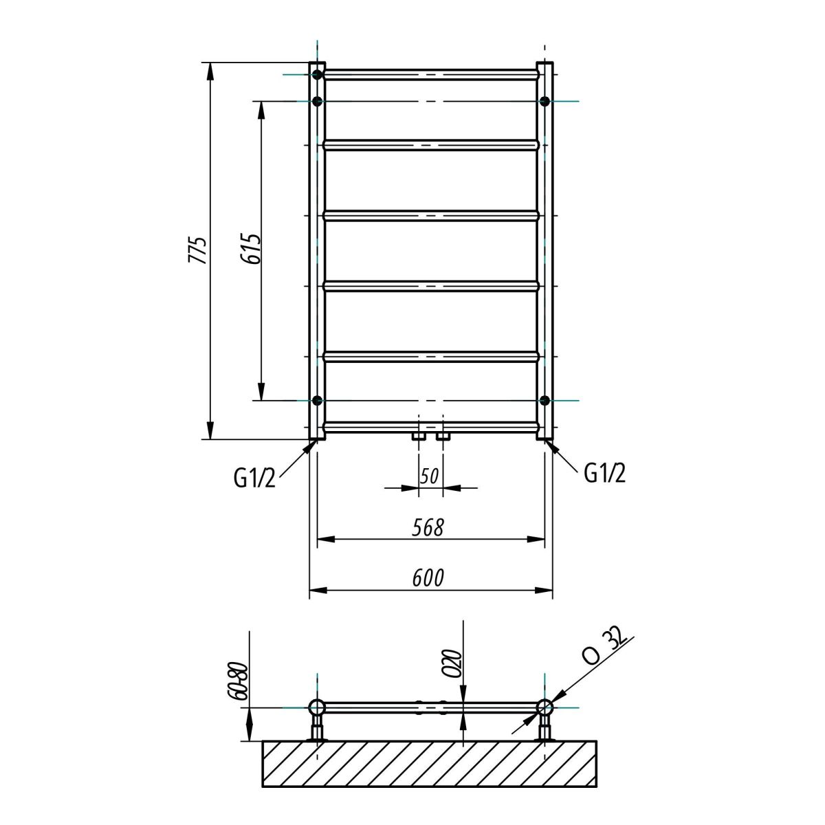 - Durchmesser der vertikalen Kollektoren: ø 32 mm