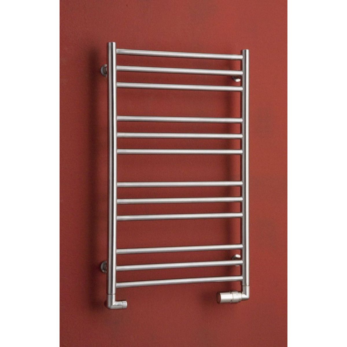 Anschlussmöglichkeiten: unten an beiden Kollektoren, auf einer Seite an einem Kollektor. Das Foto zeigt eine Beispielkonfiguration des Heizkörpers in einer anderen Farbe und Größe.