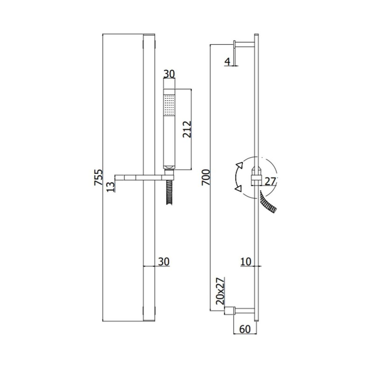 - Lieferumfang: Duschkopf, Duschschlauch, Duschstange