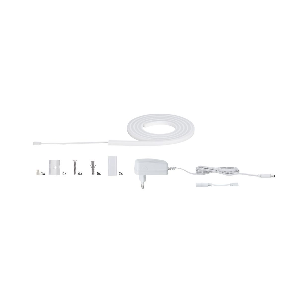 - Im Lieferumfang enthalten: 1,5 m Band, Netzteil, Montagezubehör