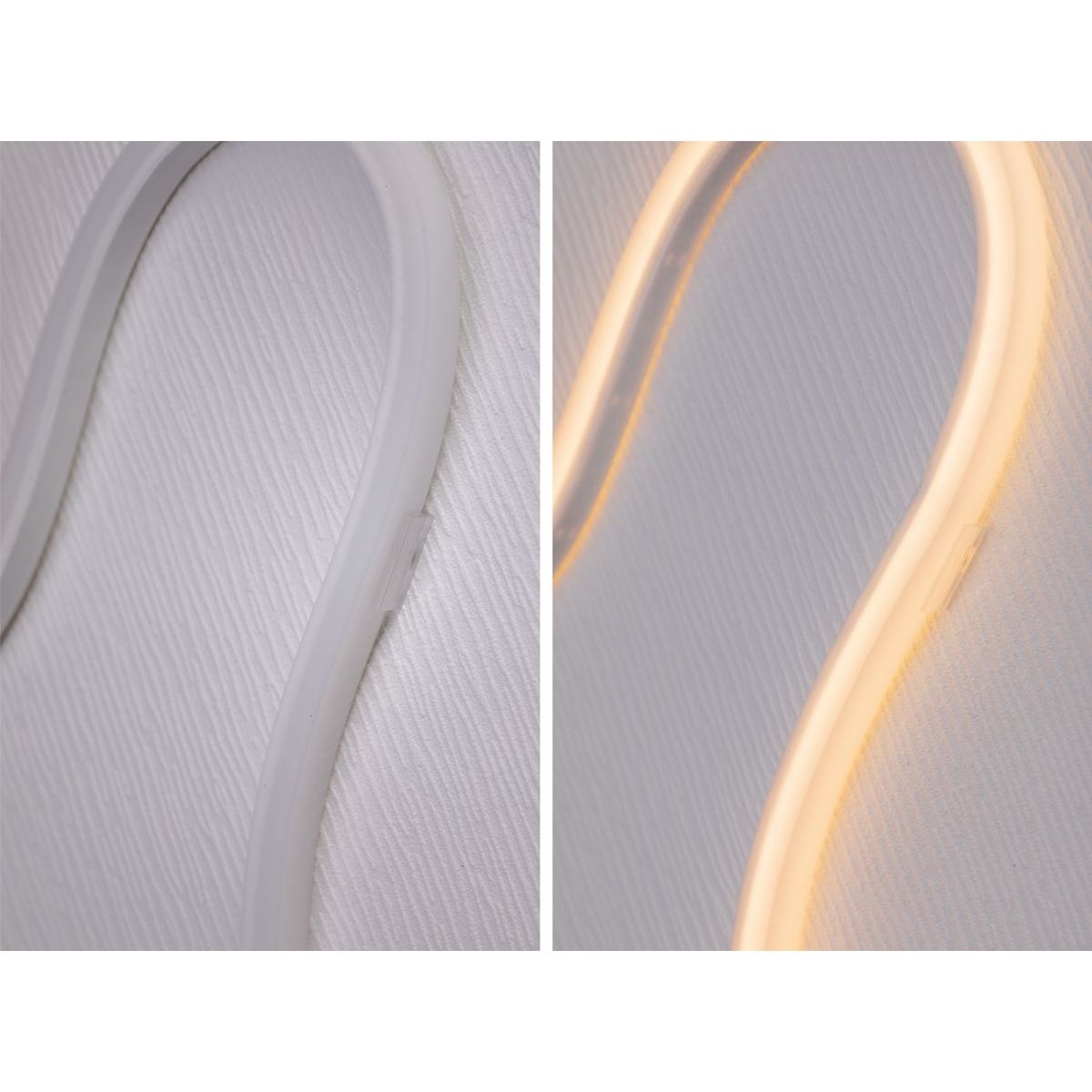 - Das Band kann in einer geraden Linie verlegt werden oder – wenn Sie kreative Lösungen bevorzugen – eine raffiniertere Form erhalten und z. B. ein leuchtendes Wandornament bilden.