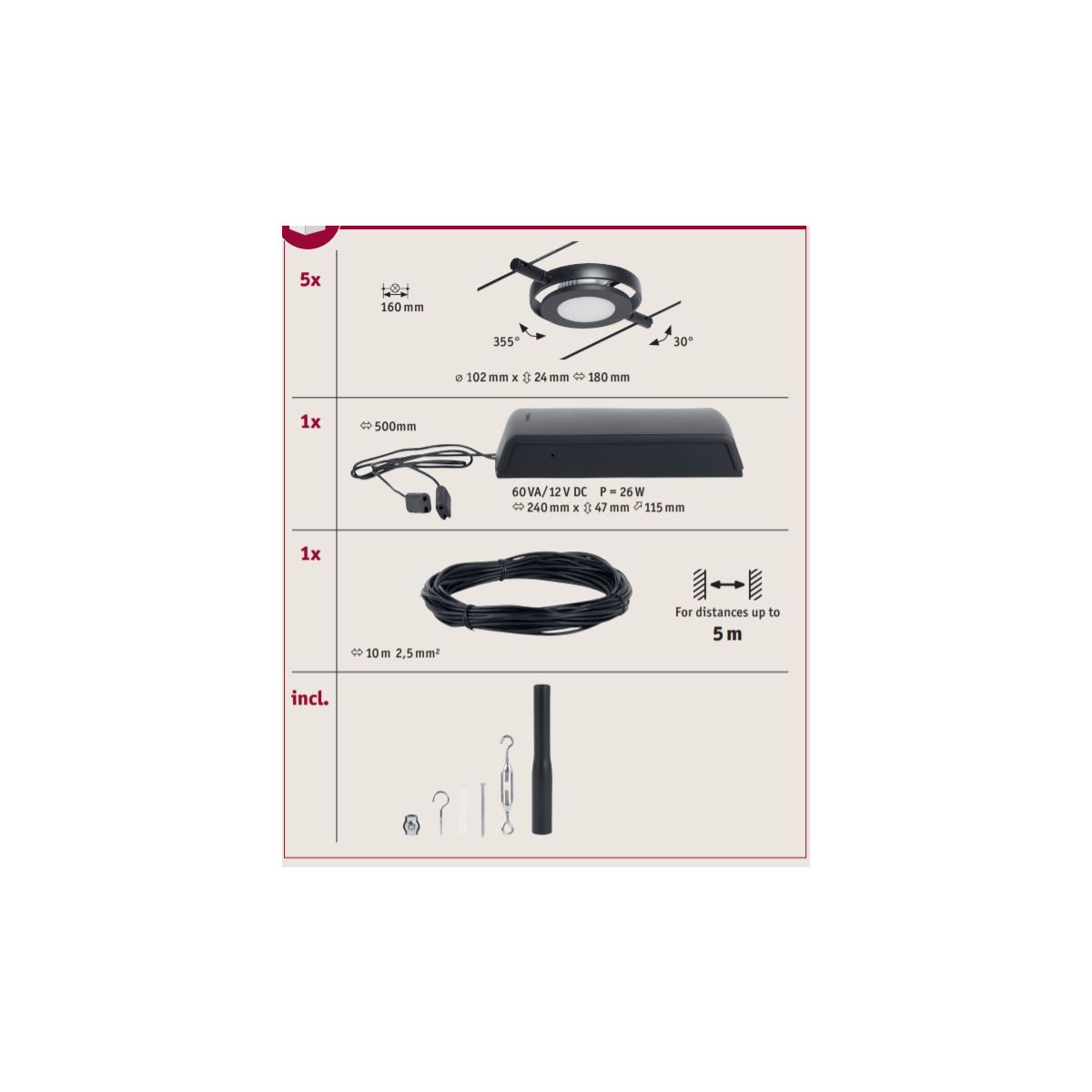 Paulmann Round Mac Kabelsystem 5x4.5 W schwarz 94418