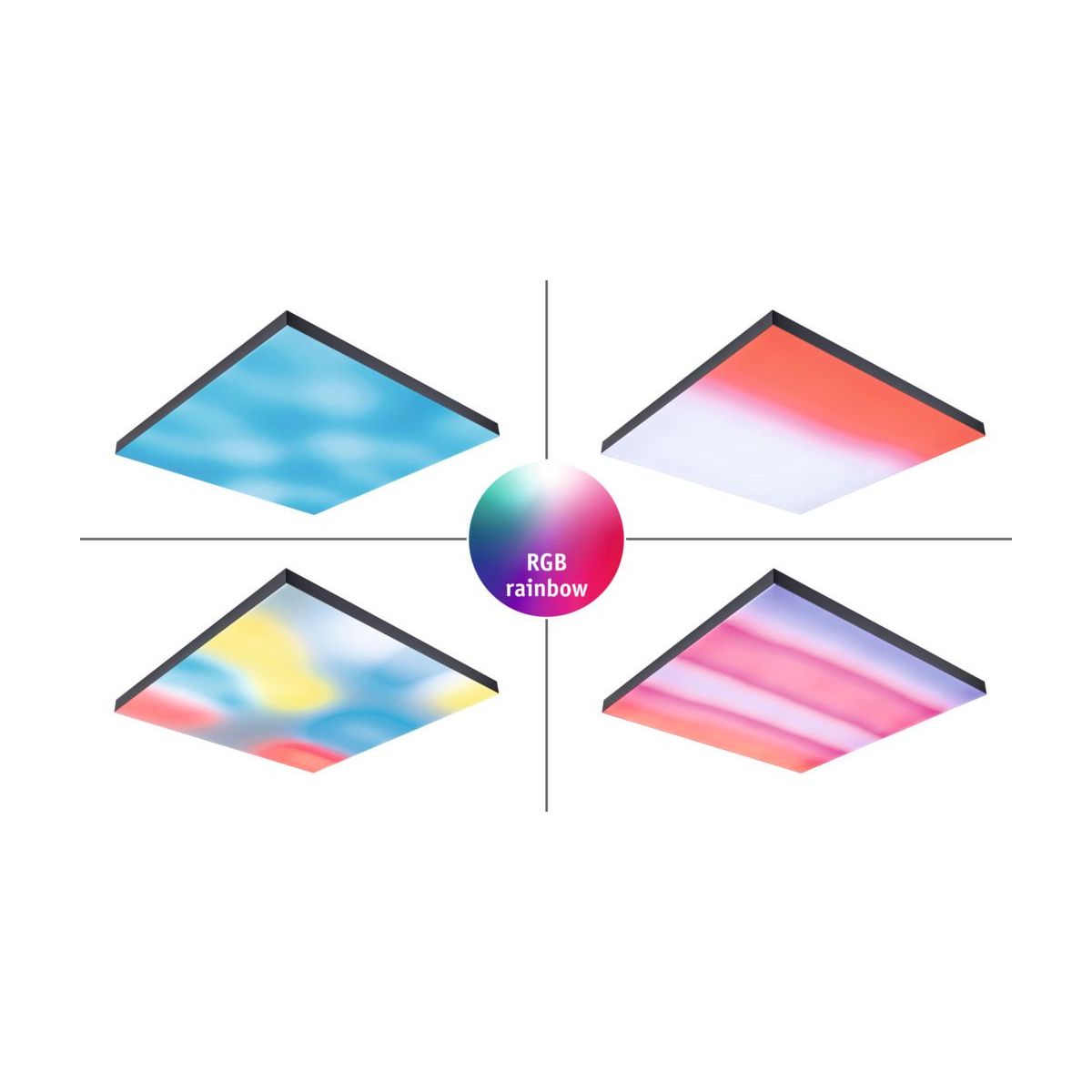 Das LED-Panel verbindet perfekte Raumbeleuchtung mit purer Farbmagie, denn hier wurden beste Lichteigenschaften neu mit dynamischen Farbeffekten kombiniert. Die Farbtemperatur lässt sich per Fernbedienung von 3000 K Warmweiß bis 6500 K Tageslichtweiß einstellen und unterstützt den natürlichen Biorhythmus. Die Deckenleuchte beeindruckt außerdem mit 16 vorprogrammierten Animationen und einer dynamischen Farbsteuerung, die nur mit flachem Licht möglich ist. Jede Lichtszenerie kann in ihrer Geschwindigkeit reguliert oder als Standbild eingefroren werden. So entsteht eine einzigartige und individuelle Lichtoberfläche. Das LED-Panel Velora Rainbow ist stufenlos dimmbar und verfügt über eine integrierte Nachtlichtfunktion. Die Deckenleuchte zeichnet sich durch eine hochwertige, matte Lichtoberfläche und ein rahmenloses, elegantes Design aus. Die Montage an Wand oder Decke erfolgt mit einem schwimmenden Rahmen.
