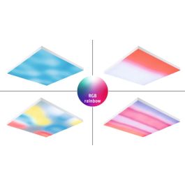 Das LED-Panel verbindet perfekte Raumbeleuchtung mit purer Farbmagie. Die Farbtemperatur lässt sich per Fernbedienung von 3000 K Warmweiß bis 6500 K Tageslichtweiß regulieren und unterstützt den natürlichen Biorhythmus. Die Deckenleuchte begeistert außerdem mit 16 vorprogrammierten Animationen und einer dynamischen Farbsteuerung, die nur mit flachem Licht möglich ist. Jede Lichtszenerie kann in ihrer Geschwindigkeit reguliert oder als Standbild eingefroren werden. So entsteht eine einzigartige und individuelle Lichtoberfläche. Das LED-Panel Velora Rainbow ist stufenlos dimmbar und verfügt über eine integrierte Nachtlichtfunktion. Die Deckenleuchte zeichnet sich durch eine hochwertige, matte Lichtoberfläche und ein rahmenloses, elegantes Design aus. Die Montage an Wand oder Decke erfolgt mit einem schwimmenden Rahmen.
