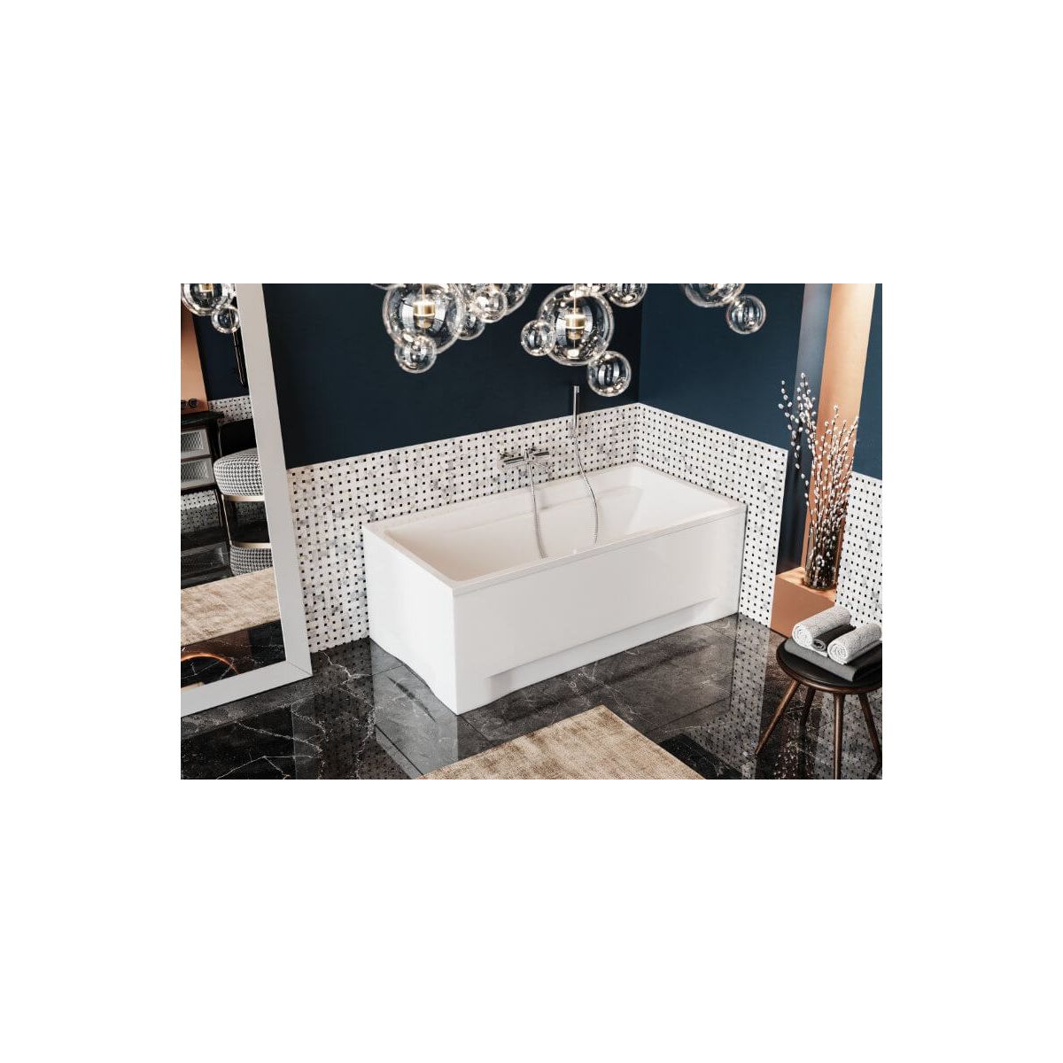 Die moderne Form und die ergonomische Ablage sind die Vorteile der rechteckigen Badewanne Elza. Dank ihnen können wir Komfort, Bequemlichkeit und Funktionalität für die ganze Familie erwarten.