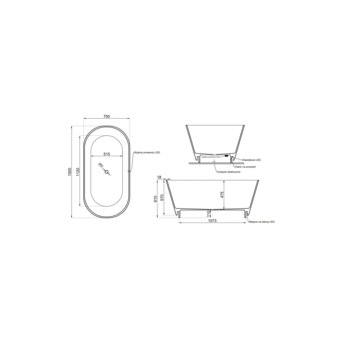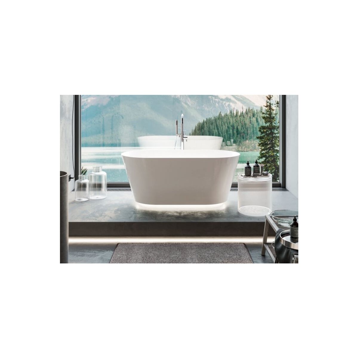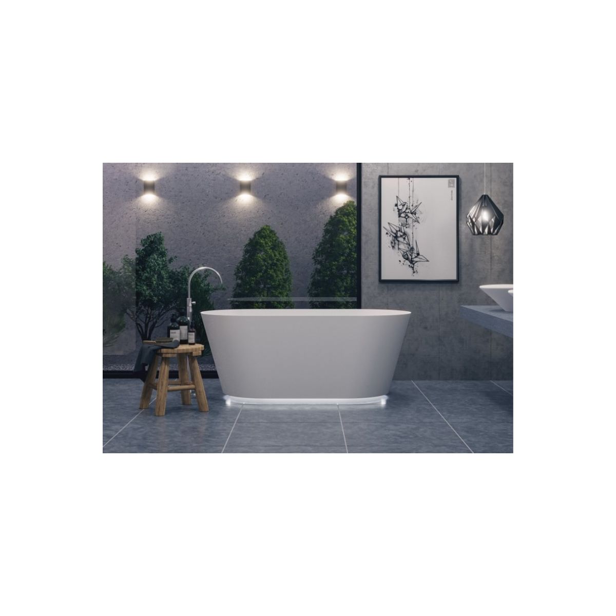 Die phänomenale freistehende Badewanne Ida ist aus hochwertigem Mineralwerkstoff gefertigt. Sie zeichnet sich durch ihre Form aus, sieht toll aus und ihr modernes und sehr elegantes Design garantiert maximalen Komfort beim täglichen Baden. Die zarte, standardmäßig eingebaute Beleuchtung, deren Farbe Sie je nach Stimmung wählen können, verleiht ihr einen einzigartigen Rahmen.
