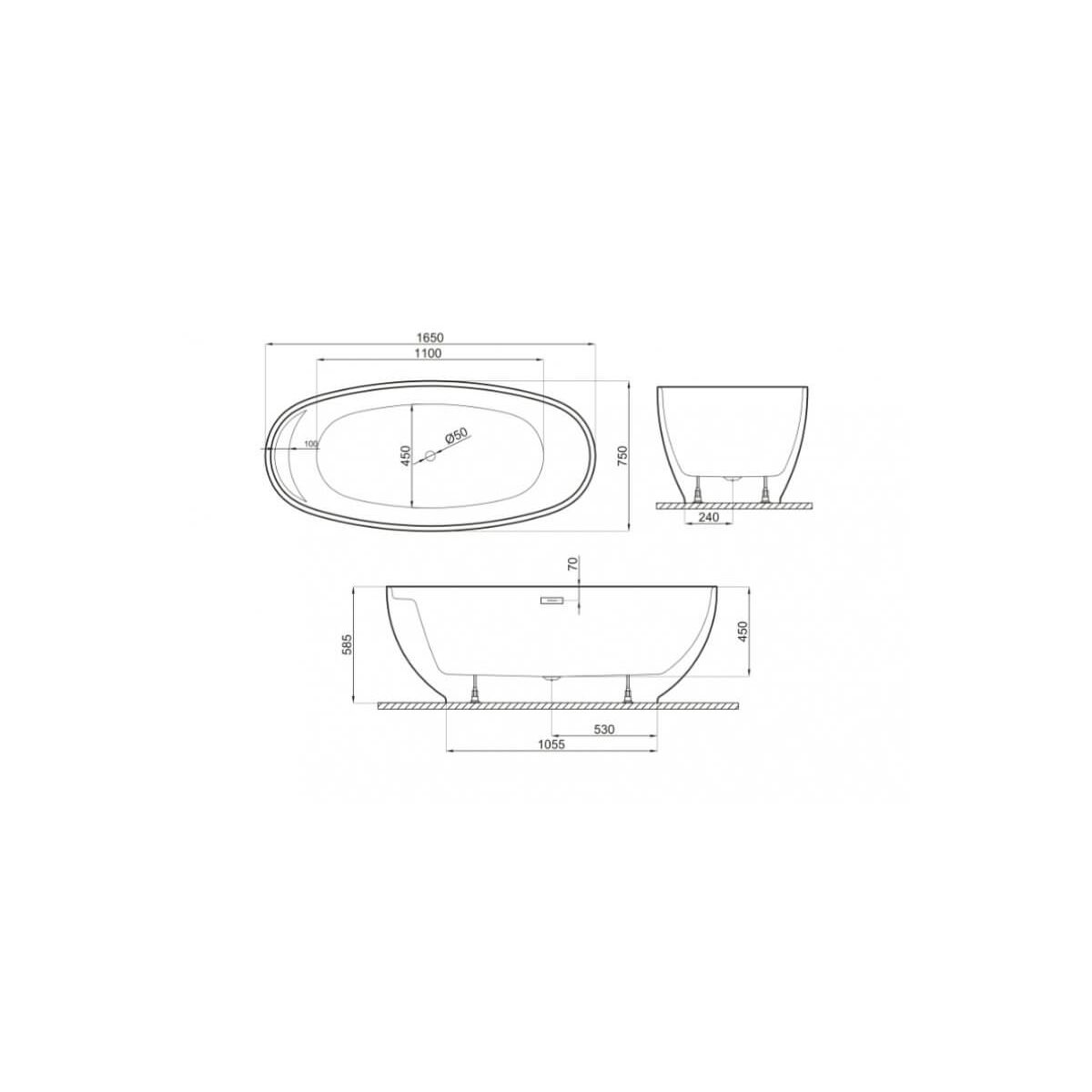 Polimat Kivi Freistehende Badewanne 165x75 cm oval zweifarbig 00476