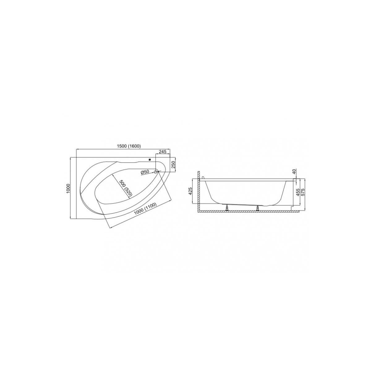 Polimat Marea Eckbadewanne 160x100 cm rechtsseitig weiß 00532