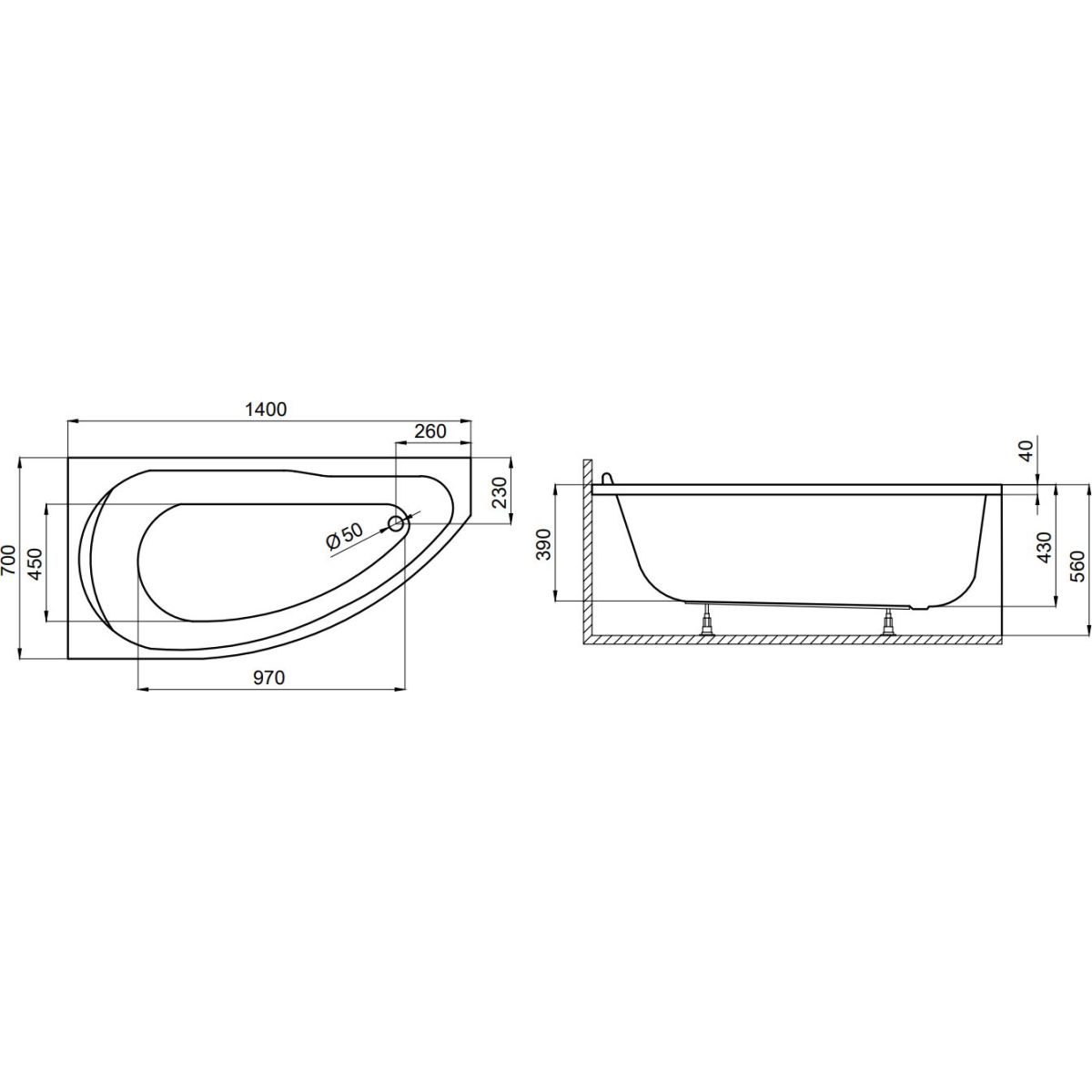 - Eckbadewanne links