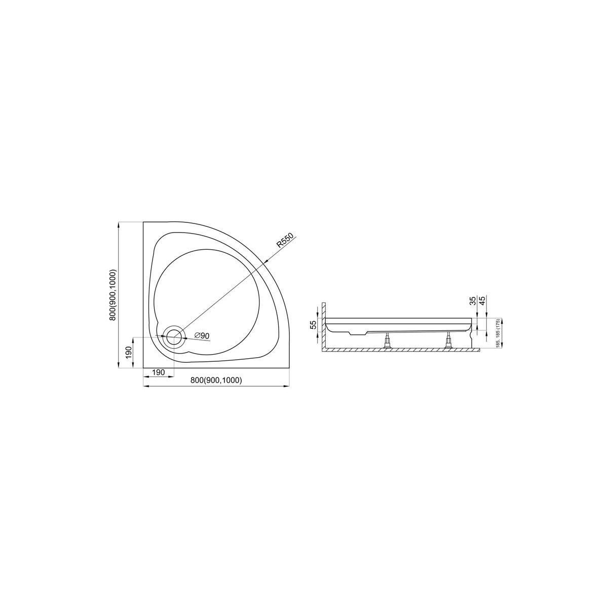 Polimat Nowy Styl Halbrunde Duschwanne 80x80 cm weiß 00617