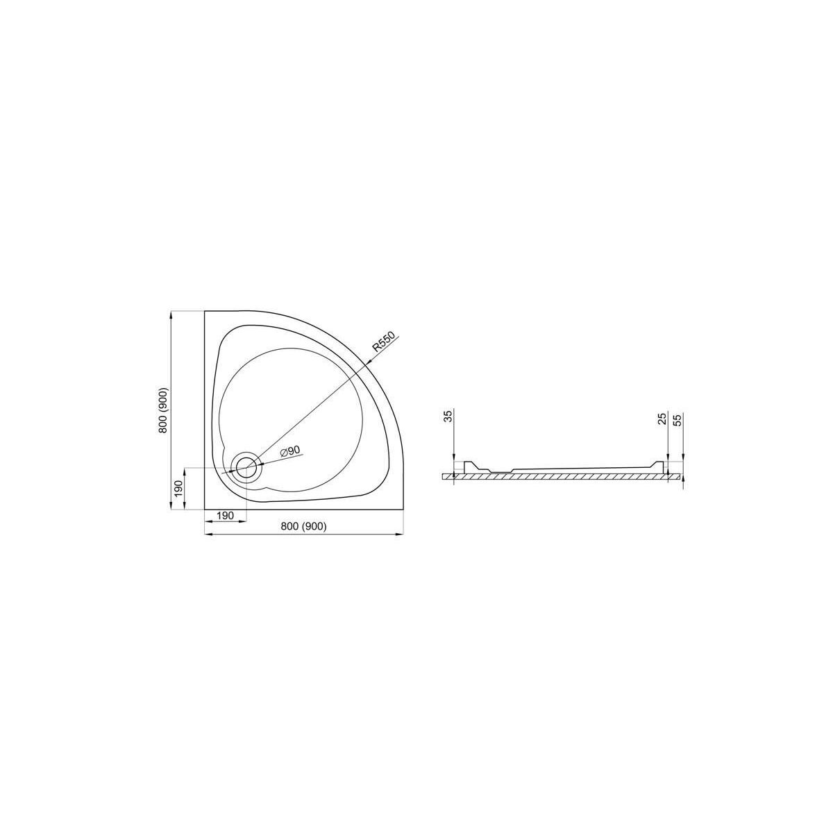 Polimat Nowy Styl Halbrunde Duschwanne 90x90 cm weiß 00622