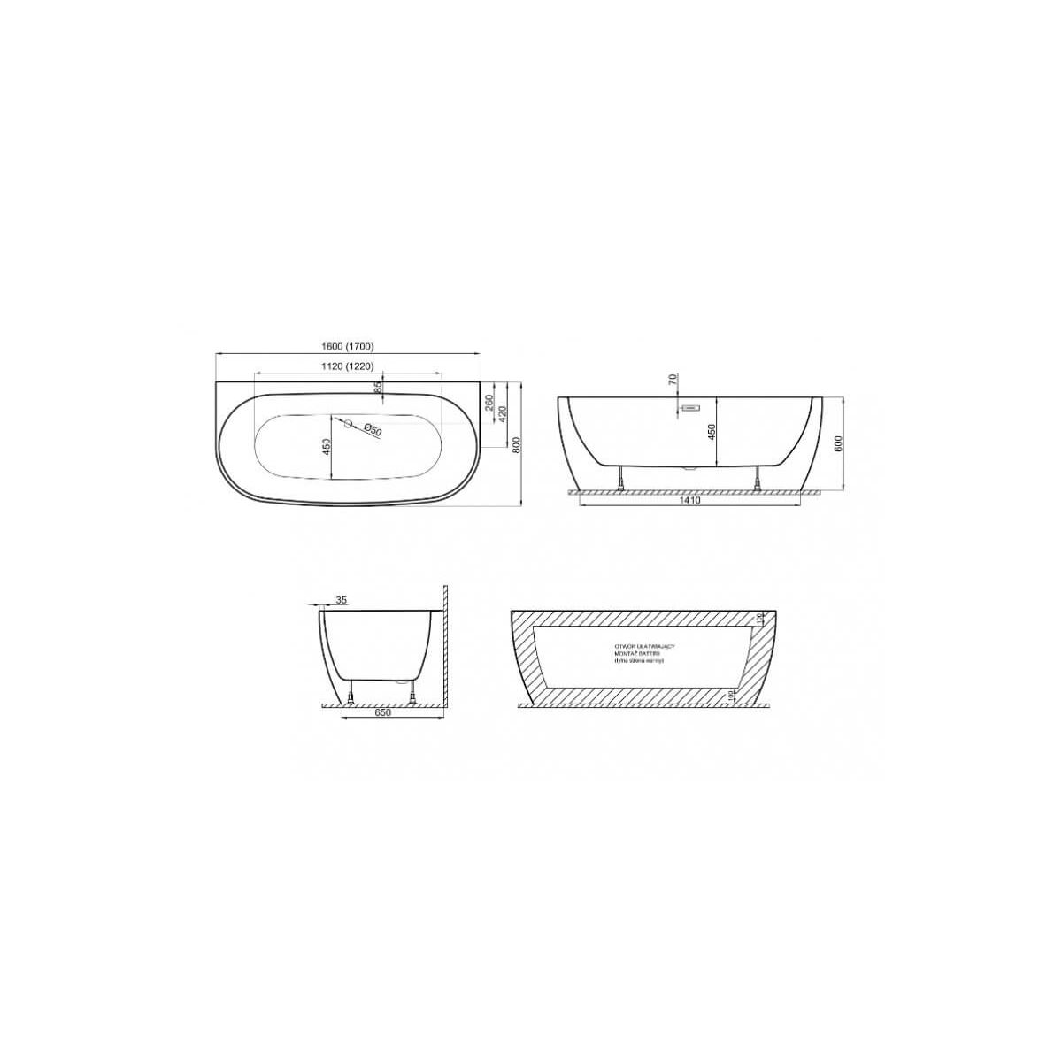Polimat Risa Wandmontierte Badewanne 170x80 cm oval zweifarbig 00446