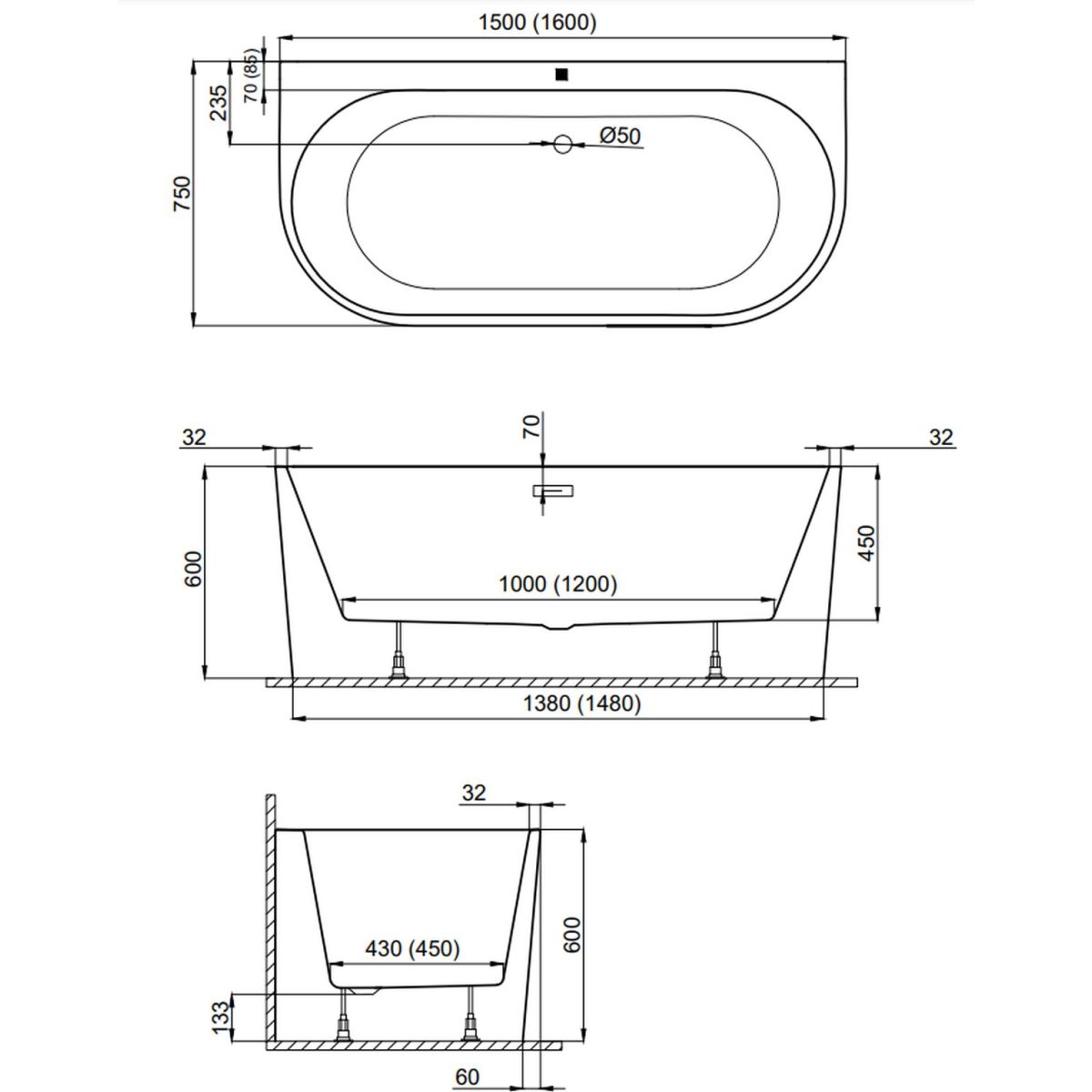 Polimat Sola Wandmontierte Badewanne 160x75 cm oval weiß 00330